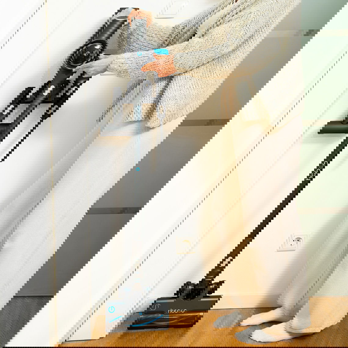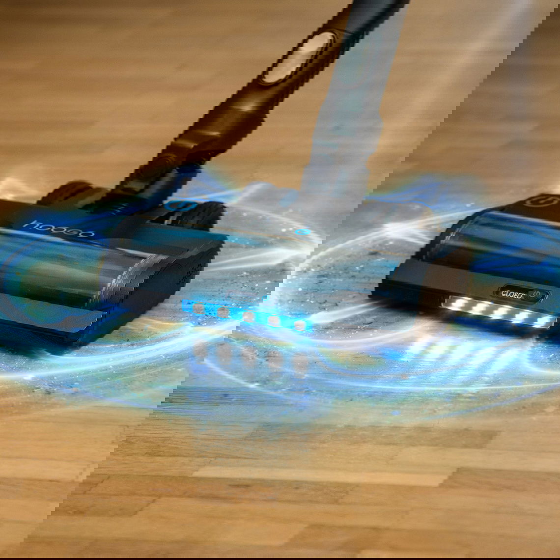Der hoogo S7 überzeugt mit kraftvoller Performance und durchdachter Technik für höchste Ansprüche. Die selbstreinigende High-End-Elektrodüse mit BlueVision-Feinstaubausleuchtung macht selbst feinste Partikel sichtbar und ermöglicht dank 360°-Absaugung eine gründliche Reinigung vorwärts, seitlich und rückwärts. Drei Leistungsstufen sowie das hochauflösende LCD-Display mit Echtzeit-Statusmeldungen sorgen für volle Kontrolle während der Reinigung.